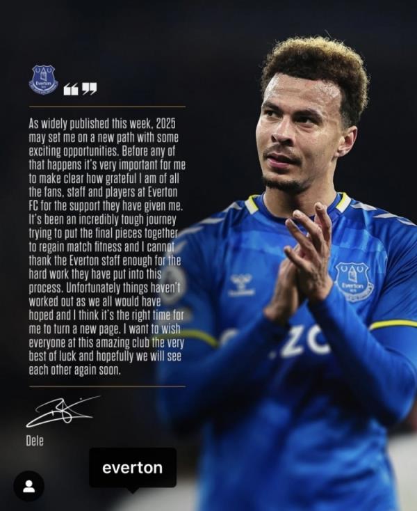 阿里告別埃弗頓:是時(shí)候開始新篇章了,感謝所有人對(duì)我的支持